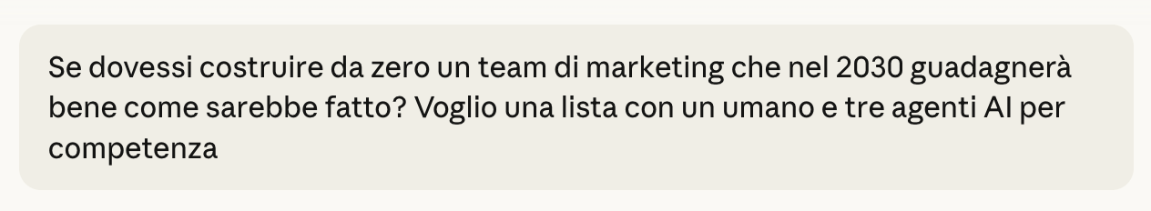 Nota una cosa: gli umani in questo team non fanno mai esecuzione. Fanno giudizio, visione, relazione, responsabilità.